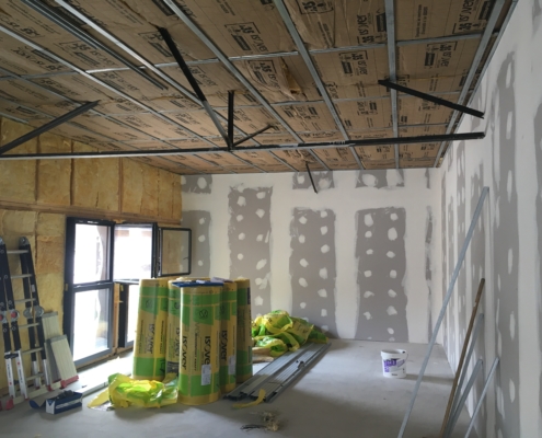 Il était aussi important de conserver l’esprit loft et industriel du bâtiment. Nous avons donc proposer de garder une certaine hauteur sous plafond afin que les poutres métalliques restent apparentes sans toutefois perdre en isolation. Des verrières type atelier ont été posées pour accentuer cet esprit loft et industriel.