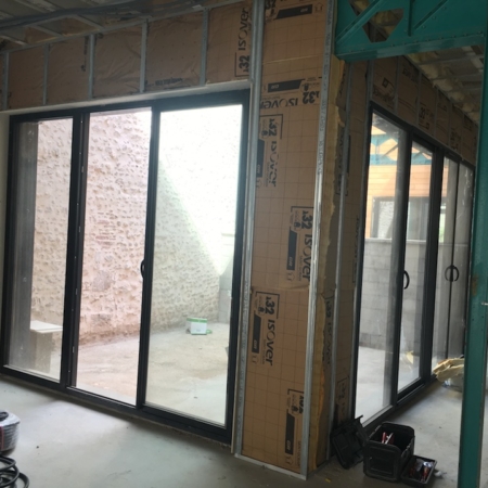 Avec cette belle hauteur sous plafond, concernant le chauffage, pour allier confort et impact énergétique nous avons opté pour l’installation d’un poêle à granulés avec un très bon rendement… le poêle à granulés est totalement adapté à ce genre de logement et apporte tous les avantages : esthétique, respectueux de l’environnement, rendement et le plaisir du feux.
